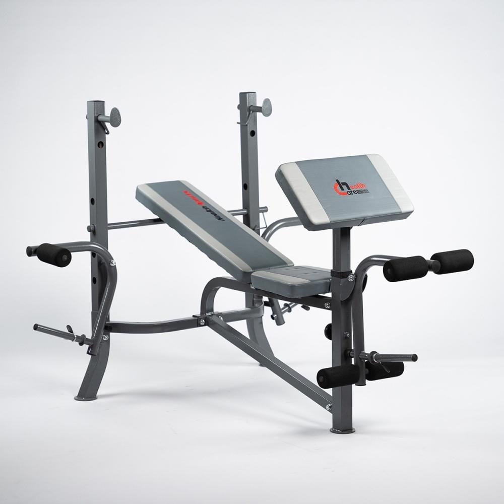 باقة القوة مجموعة من :1/ رفع الأثقال طقم بار مع دامبل هلثكير_DNS5012/ هلثكير كرسي أثقال متعدد التمارين والمستويات - رمادي - GB367B3/ هلثكير كرة رياضية...