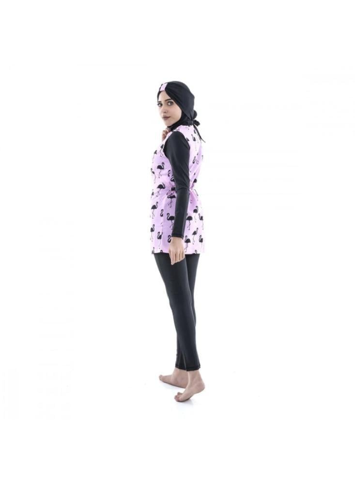 هل تبحثين عن ملابس سباحة نسائية تجمع بين الأناقة والاحتشام؟ استعدي لتجربة ملابس السباحة الإسلامية للبنات الكبار بالألوان الأنيقة الأسود والوردي من باتريك. هذه الملابس مصممة خصيصًا لتمنحك الراحة والثقة أثناء السباحة، مع تصميم يضمن لك الحرية في الحركة والاحتشام الكامل.\nاكتشفي الأناقة مع ملابس السباحة للبنات الكبار من باتريك\n\n مقاومة للكلور: يتميز نسيج ملابس السباحة بقدرته الفائقة على مقاومة الكلور، مما يحافظ على جمال اللونين الأسود والوردي حتى مع الاستخدام المتكرر.\n حرية الحركة: مصمم بعناية ليضمن لكِ أقصى درجات الراحة والمرونة أثناء السباحة، لتتمكني من الاستمتاع بكل لحظة في الماء.\n تصميم محتشم وآمن: يوفر تغطية كاملة ومثالية، مما يمنحكِ الثقة التامة أثناء السباحة، مع الحفاظ على الأناقة.\n متانة طويلة الأمد: بفضل الجودة العالية للخامات المستخدمة (92% بوليستر / 8% سباندكس)، صُممت هذه الملابس لتدوم طويلاً.\n\nمواصفات ملابس السباحة الإسلامية للبنات الكبار عبر الفالح:\n\n اللون: أسود مع لمسات وردية\n التصميم: مكون من ثلاث قطع (بلوزة طويلة بنقشة الفلامنجو، بنطال أسود، غطاء رأس)\n المادة: نسيج عالي الجودة مقاوم للكلور\n المقاسات: متوفرة بمقاسات متعددة تناسب الجميع\n السحاب: سحاب أمامي لسهولة الارتداء والخلع\n التهوية: تصميم يسمح بمرور الهواء للحفاظ على راحة الجسم\n المادة: 92% بوليستر / 8% سباندكس\n الماركة: ملابس سباحة نسائية من باتريك\n رمز المنتج: W307BKPI\n\nلا تفوتي فرصة شراء ملابس السباحة الإسلامية للبنات الكبار بالألوان الأنيقة الأسود والوردي من باتريك. تسوقي الآن عبر متجر الفالح في السعودية واستمتعي براحة واحتشام لا مثيل لهما.\n\nاحصلي عليها اليوم واستفيدي من خدمة الدفع بالتقسيط المريح على 4 دفعات دون فوائد، مع شحن سريع وآمن إلى كافة مدن المملكة بالتعاون مع تمارا وتابي. كوني جزءًا من الأناقة والراحة مع باتريك!\nجدول مقاسات ملابس السباحة الإسلامية للبنات الكبار عبر الفالح:\n