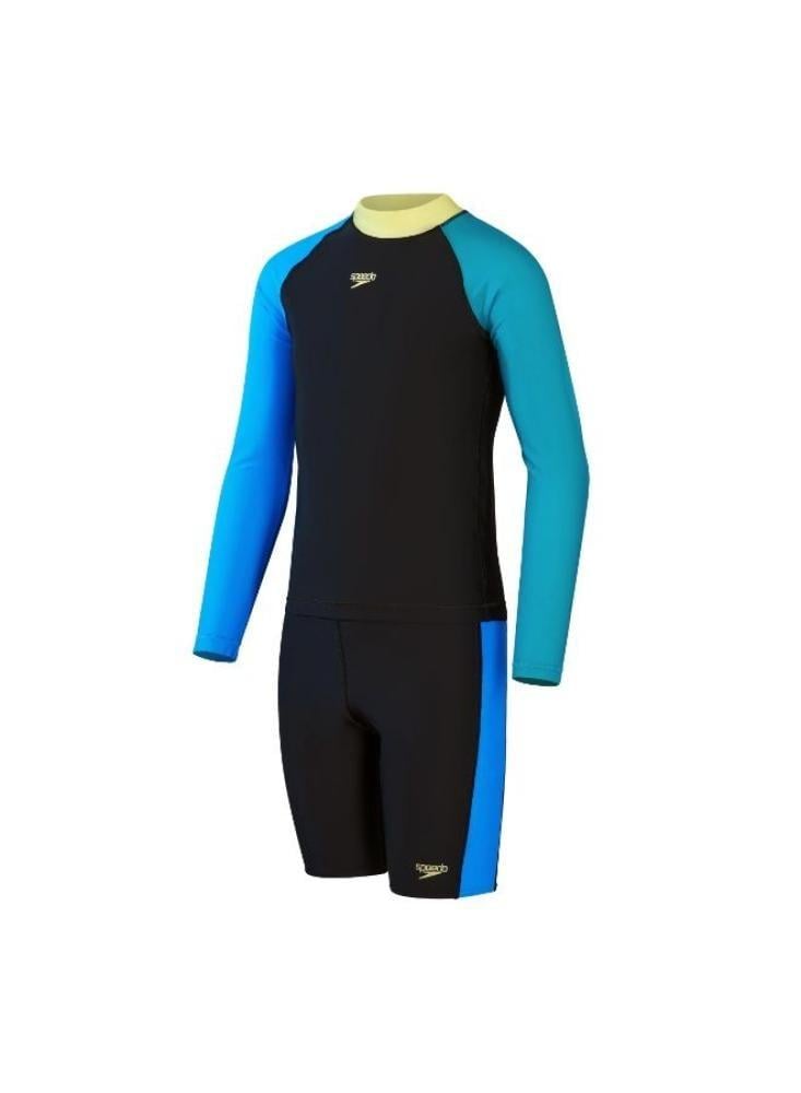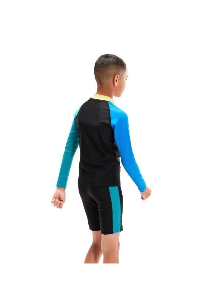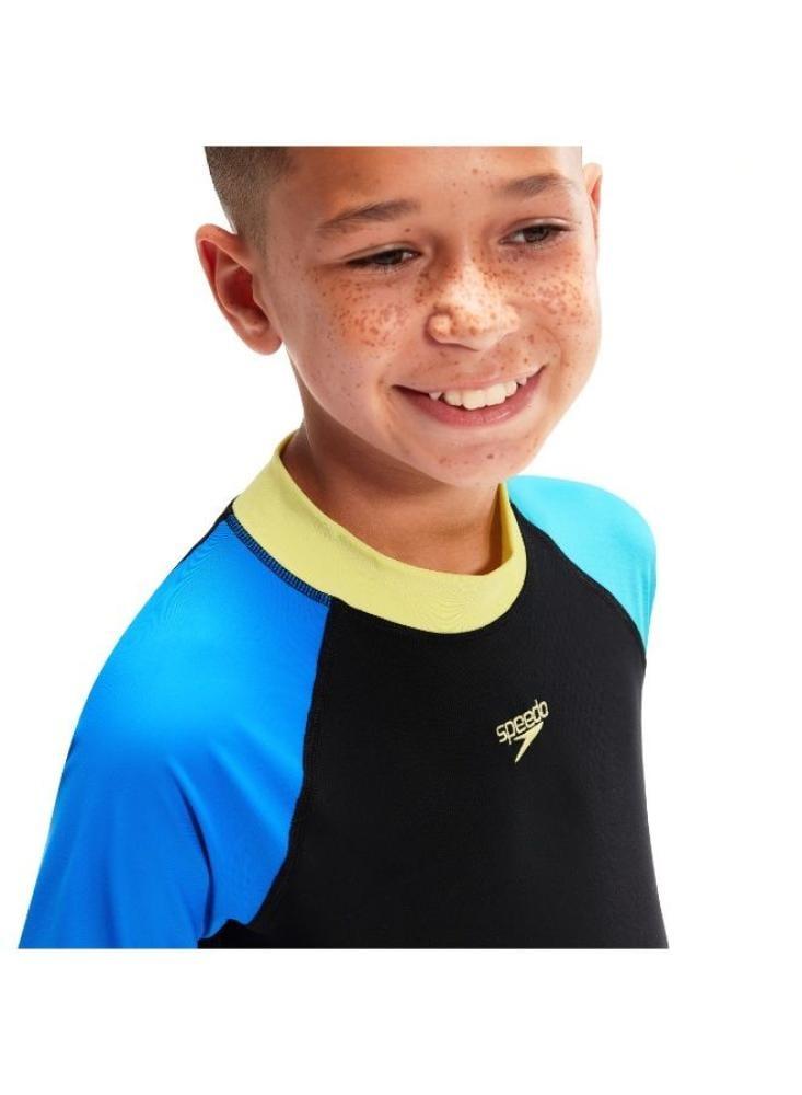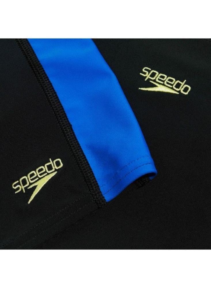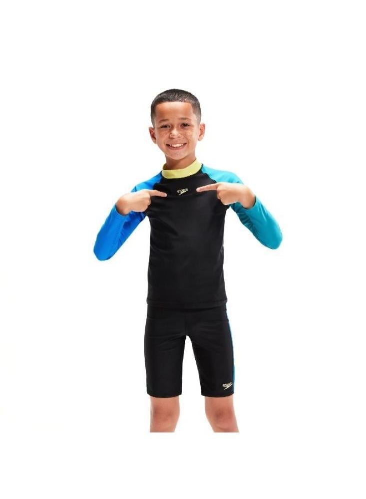 الماركة: SPEEDOبلد المنشأ: Vietnamالخامة: 53% RECYCLED POLYESTER / 47% PBTاللون: BLACK/CYANالجنس: أطفال