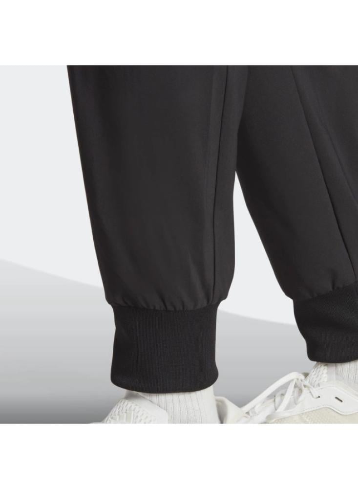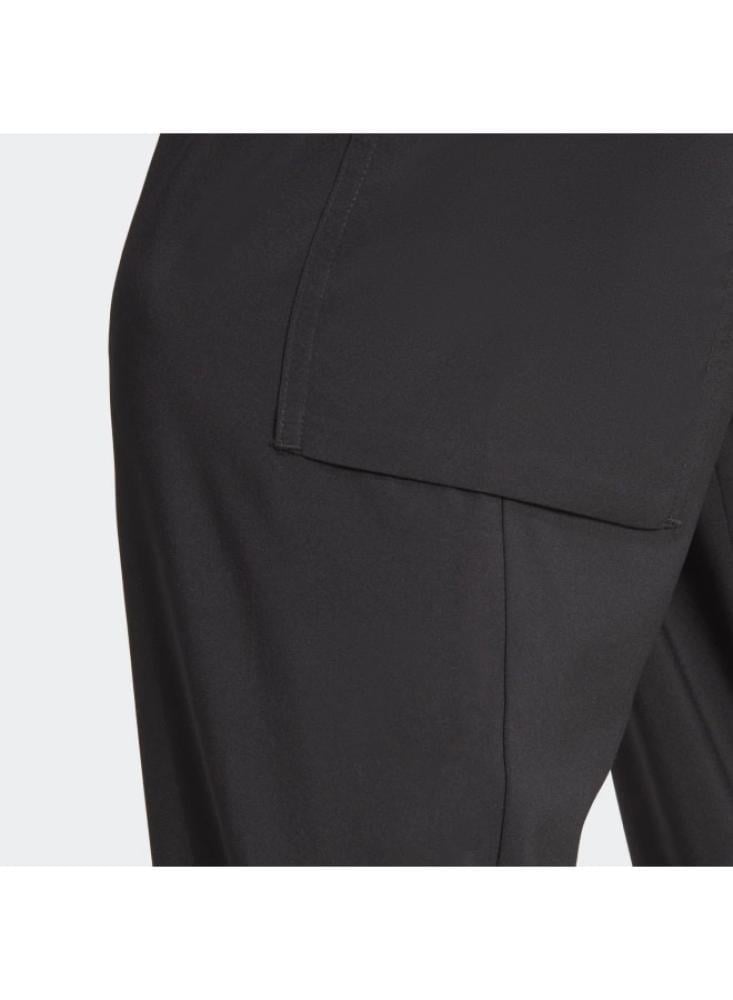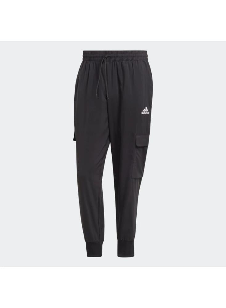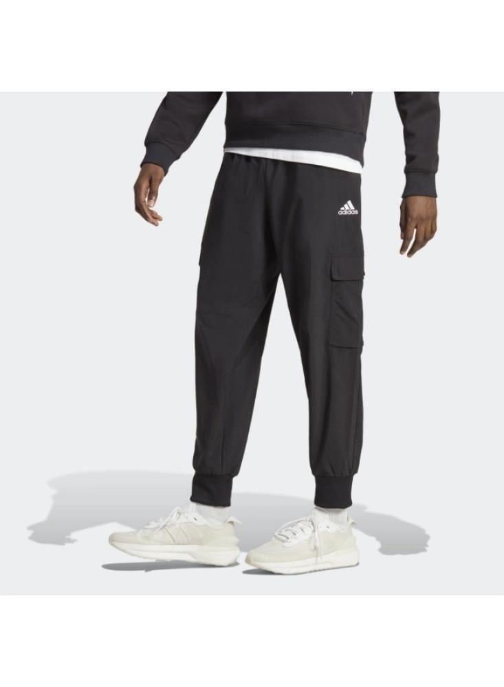 اجعل راحتك أولوية مع بنطال أديداس إسينشالز بطول الكاحل المصمم بأسلوب عصري ومريح.\nمصنوع من خامة بوليستر معاد تدويرها لتوفير إحساس ناعم وسلس يناسب مختلف الأنشطة.\nيتميز بجيوب كارجو وجيوب جانبية لتوفير مساحة تخزين عملية وأنيقة.\nتصميم الأرجل المدببة والأطراف المضلعة يعزز من الثبات ويضفي لمسة عصرية.\n\nالمواصفات:\n\nالماركة: أديداس\nاللون: أسود\nالخامة: 100% بوليستر معاد تدويره\nالتصميم: عادي بخصر متوسط\nالإغلاق: خصر قابل للتعديل بشريط شد\nالجيوب: كارجو وجانبية\nالطول: يصل إلى الكاحل\nالأطراف: مضلعة