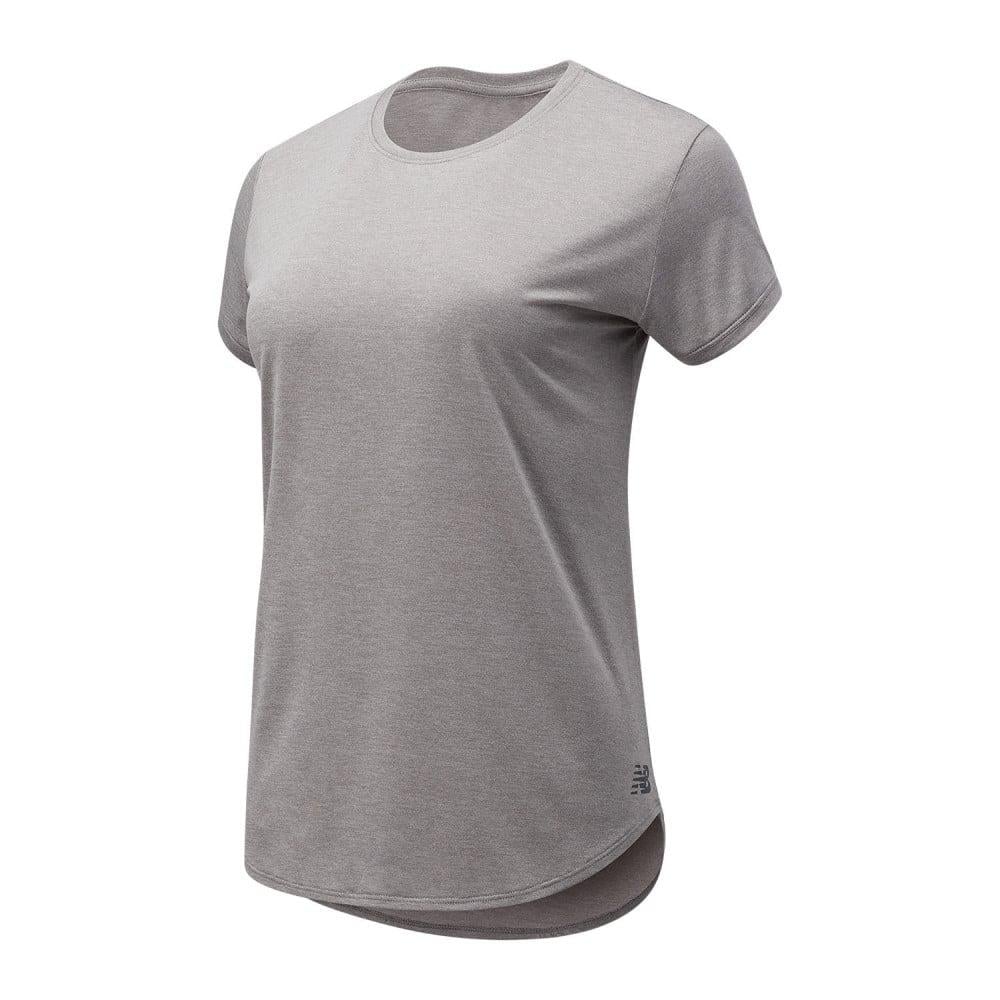 ابدئي تمارينك بثقة وراحة مع تيشيرت نيوبالانس سبورت كور هيذر المصمم خصيصًا للنساء. مصنوع من خامة 100% بوليستر خفيفة الوزن مع تقنية NB DRY التي تعمل على امتصاص الرطوبة وتجفيفها بسرعة لتحافظي على جفافك طوال فترة التمرين. يتميز بلونه الرمادي العصري الذي يناسب مختلف الإطلالات الرياضية.\n\nالتصميم يشمل ياقة دائرية وقصّة بحواف مقوسة تضفي لمسة أنثوية عصرية مع حرية حركة مثالية خلال التمارين.\nميزات المنتج\n\n تقنية NB DRY: تجفيف سريع وامتصاص مثالي للرطوبة لتحافظي على راحتك.\n خامة متينة: مصنوع من 100% بوليستر عالي الجودة.\n تصميم عملي: ياقة دائرية مع حواف مقوسة لإطلالة رياضية أنيقة.\n مظهر عصري: اللون الرمادي يناسب جميع الملابس الرياضية.\n راحة أثناء الحركة: تصميم يناسب الحركات الرياضية دون قيود.\n\nجدول المقاسات\n