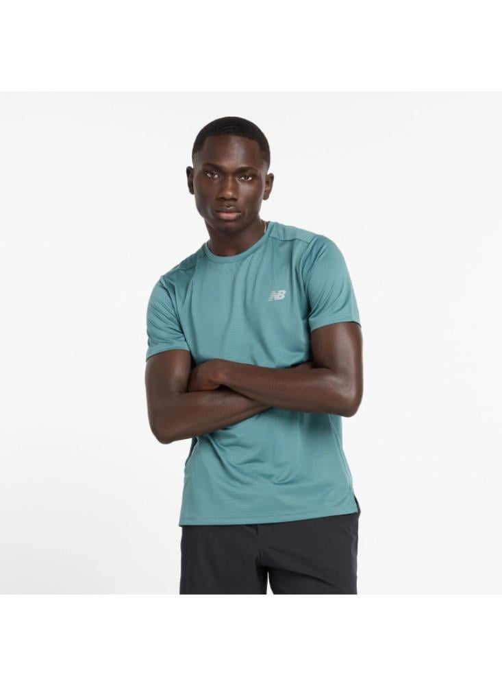 عزز ترسانتك الرياضية مع تي شيرت New Balance Sport Essentials Run للرجال - الرفيق المثالي لتحقيق أهداف اللياقة البدنية الخاصة بك.\n\nمصنوع من البوليستر المعاد تدويره وقماش جيرسي خفيف الوزن، مما يوفر الراحة والمتانة. مع تقنية التجفيف السريع NB DRY المتطورة والفتحات الجانبية لتدفق الهواء الفائق، ستتغلب على كل تمرين وأنت تشعر بالانتعاش والثقة. يعمل التصميم الانسيابي وفتحة العنق الدائرية والشعار العاكس على تعزيز الأداء والأناقة، مما يمنحك الأفضلية في أي مسعى للياقة البدنية.\n\nاذهب إلى صالة الألعاب الرياضية أو اركض على المسارات بهذا التي شيرت، المصمم خصيصًا لعشاق الصالة الرياضية وعشاق الجري. دع New Balance ترفع من مستواك وتشعل النار بداخلك.\n\nالميزات\nتعمل تقنية التجفيف السريع NB DRY على امتصاص الرطوبة بعيدًا عن جسمك لمساعدتك على ممارسة الرياضة بسهولة\nفتحة جانبية لمزيد من تدفق الهواء\nأكمام قصيرة\nشعار عاكس مصمم لالتقاط الضوء\nالمواد\nبوليستر معاد تدويره بنسبة 100%\nجيرسي خفيف الوزن قماش