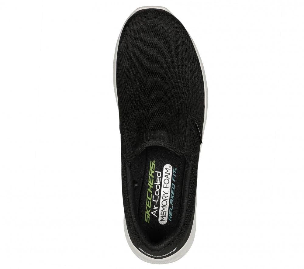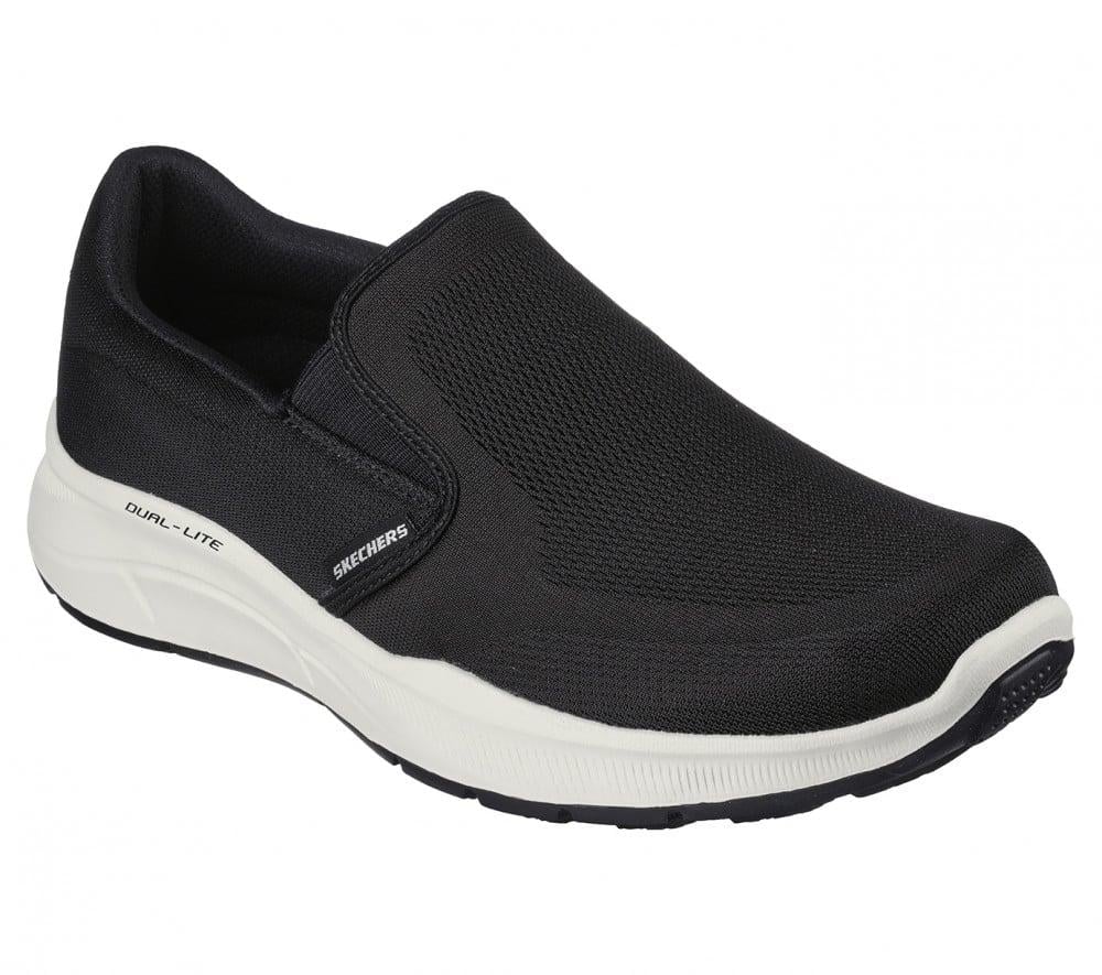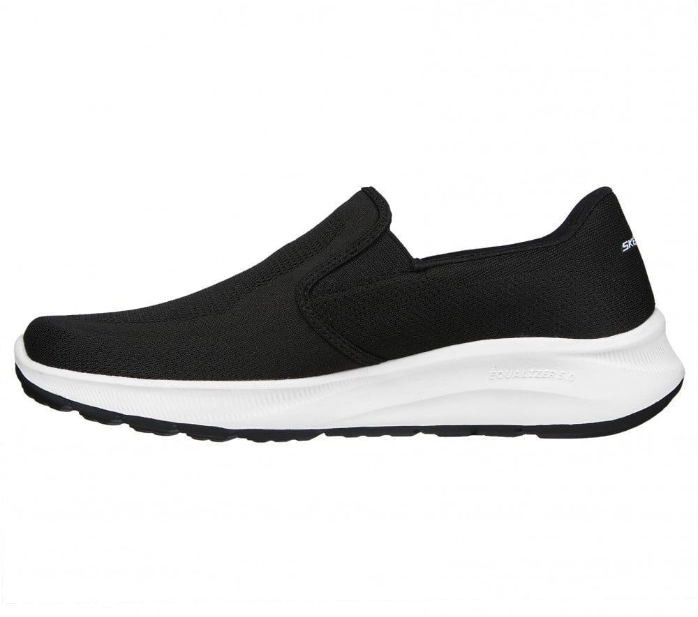 \n\n\n\n\nارتقِ بمستوى الراحة والأداء مع حذاء سكيتشرز إكوالايزر 5.0. صُمم هذا الحذاء ليناسب الحياة اليومية والأنشطة الرياضية بخفة وراحة لا تضاهى، مما يجعله الخيار المثالي للرجل الباحث عن الأناقة العملية.\nالمميزات والمواصفات\n\n تصميم عملي ومريح:\n\n يتميز بتصميم شبكي هندسي من النسيج الصناعي الذي يوفر التهوية والمرونة.\n تصميم سهل الارتداء بدون أربطة، مما يوفر تجربة ارتداء مريحة وسريعة.\n\n\n بطانة Skechers Air-Cooled Memory Foam™:\n\n توفر توسيدًا مريحًا يتناسب مع شكل القدم، مما يخفف الضغط ويمنحك شعورًا بالراحة طوال اليوم.\n\n\n نعل خارجي متين ومرن:\n\n يوفر ثباتًا قويًا وقبضة جيدة على مختلف الأسطح، مما يجعله مثاليًا للاستخدام الرياضي واليومي.\n\n\n مواد نباتية 100%:\n\n خيار مستدام وصديق للبيئة، مصنوع من مواد نباتية بالكامل.\n\n\n تصميم عصري وأنيق:\n\n اللون الأسود الأنيق يناسب مختلف الإطلالات والمناسبات.\n تصميم Relaxed Fit™ يمنح القدم مساحة إضافية للراحة.\n\n\n\nلماذا تختار سكيتشرز إكوالايزر 5.0؟\n\n يجمع بين التصميم الأنيق والوظائف العملية.\n يوفر راحة فائقة بفضل تقنية التهوية والتوسيد.\n خيار مثالي للأنشطة اليومية والرياضية.\n\nاجعل كل خطوة محسوبة ومريحة مع حذاء سكيتشرز إكوالايزر 5.0، الخيار الأمثل للرجل العصري!\nمع سكيتشرز، الراحة هي أسلوب حياة.\n\n\n\n\n\n \nجدول المقاسات\n