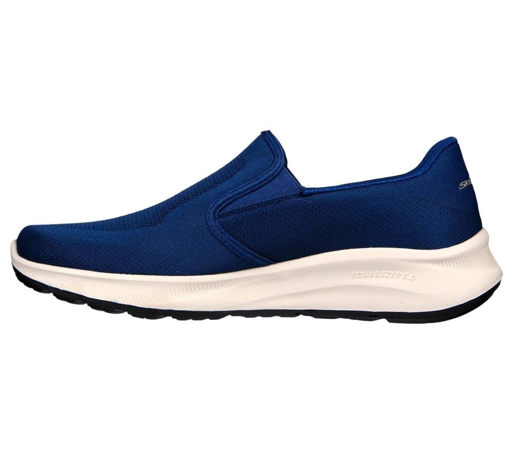 \n\nارتقِ بأسلوبك ومستوى الراحة مع حذاء سكيتشرز إكوالايزر 5.0. يتميز هذا الحذاء الأنيق والمريح بتصميم عصري بدون أربطة، مما يجعله خيارًا مثاليًا للأنشطة اليومية أو التمارين الرياضية الخفيفة.\nالمميزات والمواصفات\n\n راحة فائقة وتصميم مريح:\n\n Relaxed Fit™: تصميم يوفر مساحة إضافية للقدم في منطقة الأصابع ومقدمة القدم، مما يضمن راحة تدوم طوال اليوم.\n Skechers Air-Cooled Memory Foam™: بطانة مبطنة ومبردة بالهواء تمنحك توسيدًا مريحًا ودعماً مثالياً.\n\n\n مواد مستدامة وصديقة للبيئة:\n\n مصنوع بالكامل من مواد نباتية 100%، مما يجعله خيارًا صديقًا للبيئة.\n\n\n نعل خارجي متين:\n\n نعل مزدوج الكثافة يوفر ثباتًا واستقرارًا ممتازًا أثناء الحركة.\n\n\n قابل للغسل في الغسالة:\n\n تصميم عملي يسهل تنظيفه ويضمن الحفاظ على مظهره الأنيق.\n\n\n تصميم عصري وسهل الارتداء:\n\n الجزء العلوي مصنوع من شبكة هندسية مع لوحين مطاطيين جانبيين لتسهيل ارتداء الحذاء وخلعه.\n كعب بارتفاع 3.81 سم يمنحك دعمًا إضافيًا.\n\n\n لمسات أنيقة:\n\n شعار Skechers® المميز يضيف لمسة عصرية أنيقة.\n\n\n\nلماذا تختار سكيتشرز إكوالايزر 5.0؟\n\n تصميم عصري يناسب مختلف الإطلالات اليومية والرياضية.\n راحة لا تضاهى بفضل التقنيات المبتكرة.\n خيار عملي وسهل الصيانة مع تصميم قابل للغسل.\n\nاجعل خطواتك أكثر راحة وأناقة مع حذاء سكيتشرز إكوالايزر 5.0، الخيار المثالي للرجل العصري الذي يبحث عن التميز!\nمع سكيتشرز، الراحة هي عنوان الأناقة.\n\n احصل عليه عبر متجر الفالح في السعودية مع إمكانية الدفع بالتقسيط المريح على 4 دفعات دون فوائد عبر تابي وتمارا وبشحن سريع ومجاني.\n\n\nجدول المقاسات\n