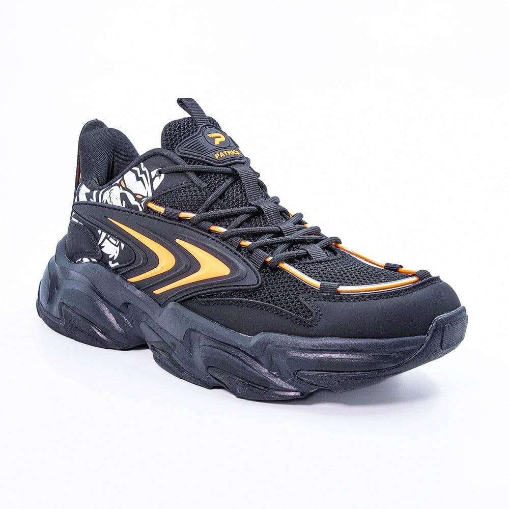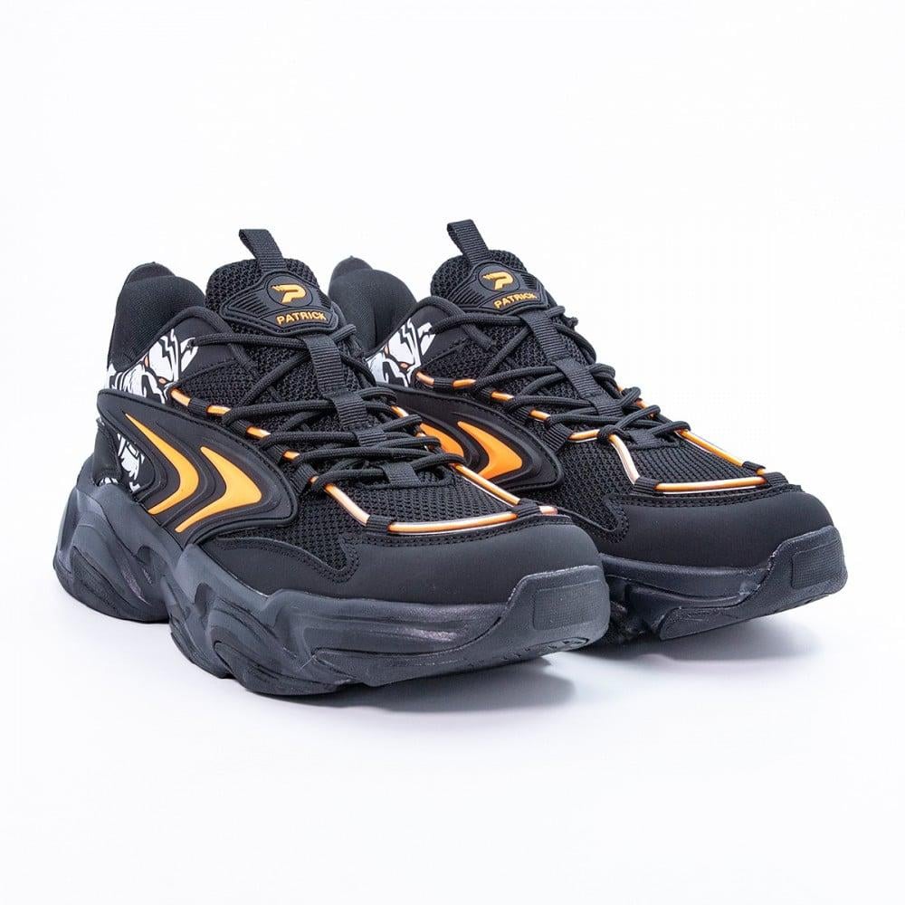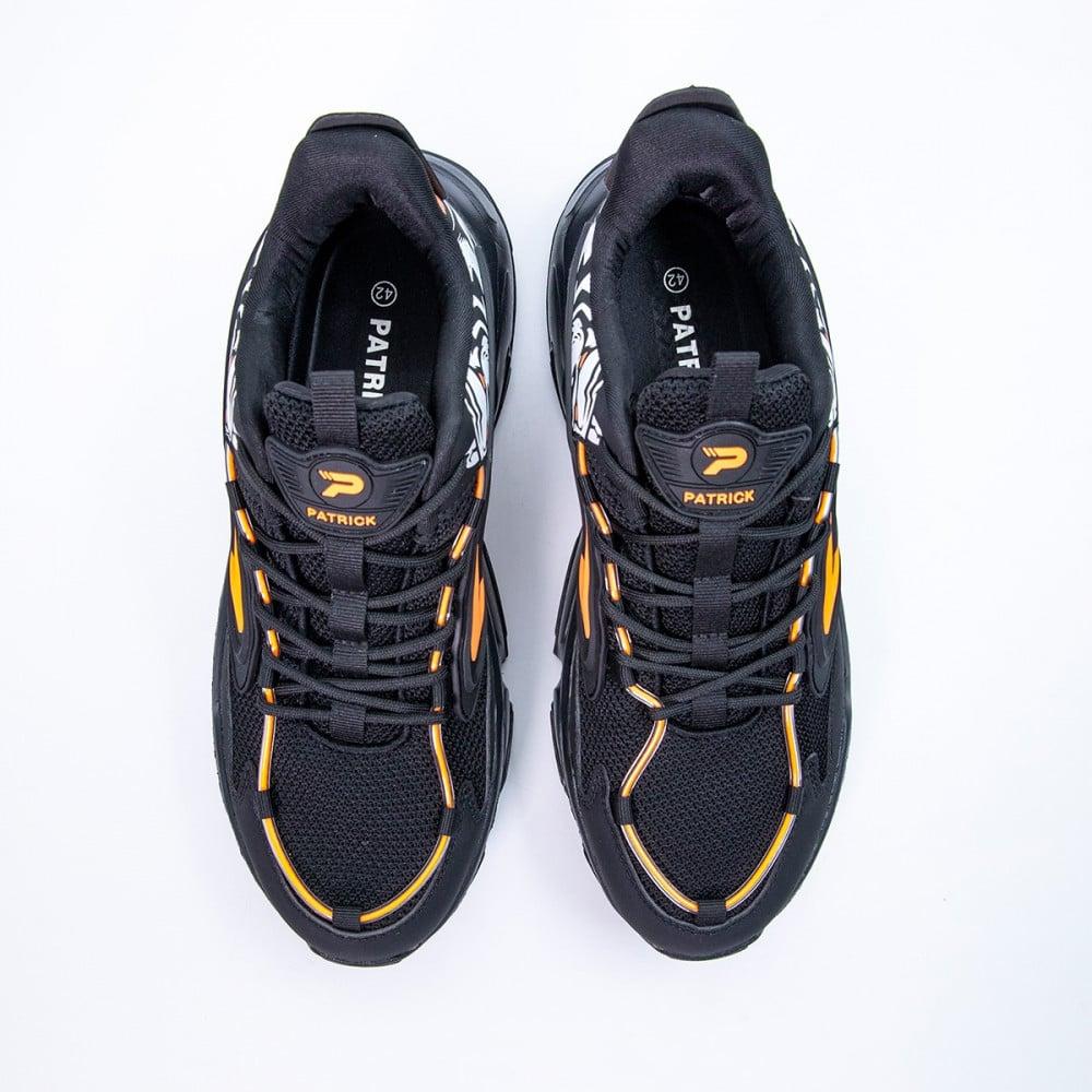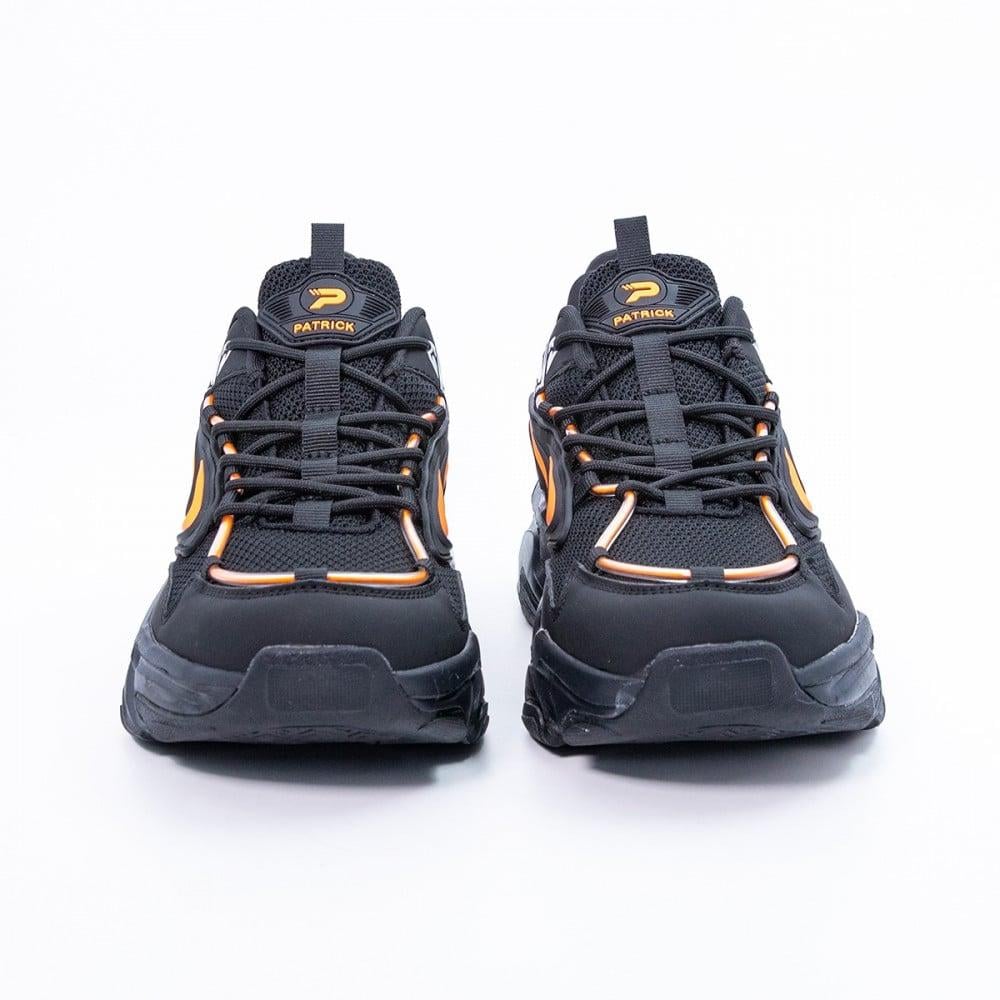 هل تبحث عن راحة وأسلوب يجمع بين القوة والأناقة؟ حذاء باتريك لايف ستايل الرجالي هو الاختيار المثالي لمن يسعى للأناقة الرياضية والشعور بالراحة طوال اليوم. استمتع بتصميم فريد وجريء يليق بذوقك المتميز.\nمواصفات حذاء باتريك لايف ستايل الرجالي:\n\n الماركة: باتريك\n بلد المنشأ: الصين\n الخامة: نسيج بوليستر\n اللون: أسود وبرتقالي\n الجنس: رجالي\n\nحذاء باتريك الرجالي يوفر لك الراحة والمتانة طوال اليوم:\n\n خامة نسيج بوليستر المريحة: توفر نسيجًا مرنًا يسمح بمرور الهواء، مما يحافظ على انتعاش القدمين طوال اليوم.\n نعل خارجي متين: يمنحك راحة لا مثيل لها بامتصاصه للصدمات، مما يجعل حذاء باتريك الرياضي مثاليًا للمشي الطويل أو الأنشطة اليومية.\n تصميم جذاب وجريء: اللونان الأسود والبرتقالي يضيفان لمسة من الأناقة الشبابية إلى إطلالتك.\n\nتسوق الآن حذاء باتريك لايف ستايل الرجالي عبر متجر الفالح في السعودية، واستمتع بخدمة الشحن السريع لجميع مدن المملكة. استفد من ميزة الدفع بالتقسيط على 4 دفعات مع تمارا!\nجدول