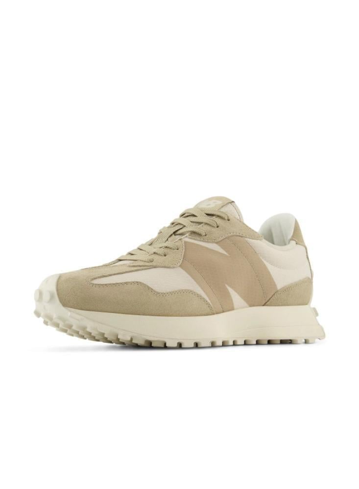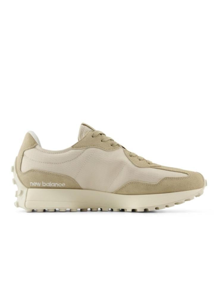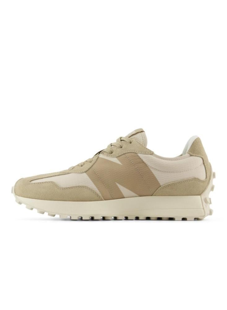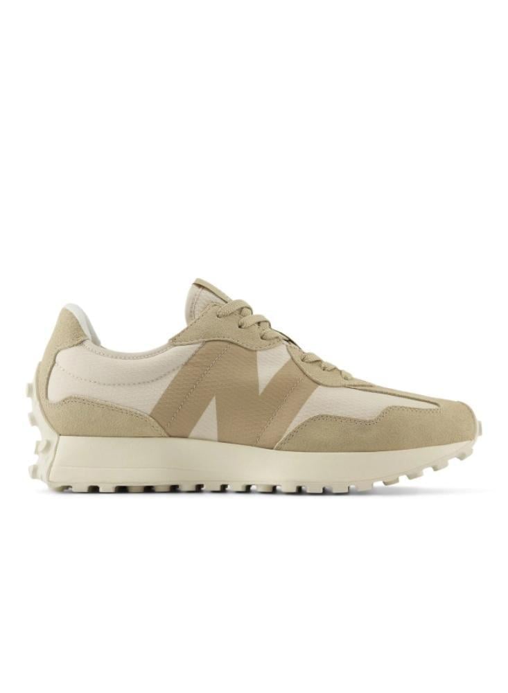 استلهم حذاء 327 من أحذيتنا الرياضية الشهيرة في السبعينيات، ليقدم مزيجاً جريئاً يجمع بين الأناقة العصرية والطراز الكلاسيكي. تصميمه الفريد ولمساته العصرية يجعلان منه قطعة مميزة تضيف لمسة جريئة إلى خزانتك.\n\nالمميزات الأساسية:\n\n جزء علوي مميز: مصنوع من الجلد المدبوغ والنايلون مع لمسات من طبعات الحيوانات، ليمنحك إطلالة فريدة تجمع بين الكلاسيكية والجرأة.\n شعار N كبير الحجم: مستوحى من الطراز القديم ليضفي لمسة كلاسيكية أنيقة.\n إغلاق آمن: نظام إغلاق برباط يوفر ملاءمة مريحة وآمنة.\n راحة مثالية: نعل داخلي مبطن قليلاً يعزز الراحة أثناء الارتداء.\n قبضة قوية: نعل خارجي مطاطي منقوش يوفر ثباتاً وأداءً مميزاً.\n\nتفاصيل إضافية:\n\n الإغلاق/القفل: برباط.\n مادة البطانة: نسيج صناعي.\n مادة النعل: مطاط.\n نمط أصابع القدم: دائري.\n مادة الجزء العلوي: جلد مدبوغ.\n