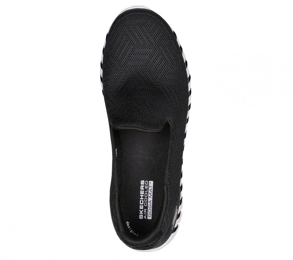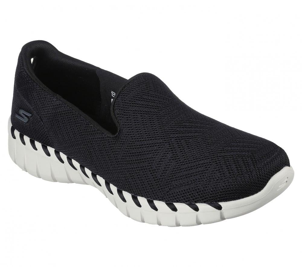 \n\n\n\n\n الماركة: سكيتشرز\n الخامة: نسيج (Textile)\n اللون: أسود\n الجنس: نسائي\n\nالوصف:\nاستمتعي بالراحة المطلقة والأسلوب الرياضي مع حذاء Skechers Go Walk Smart 2 'Black White'. يتميز هذا الحذاء النسائي بتقنيات مبتكرة وتصميم عملي يجعل كل خطوة تجربة مريحة. مع نعل Skechers GOGA MAX الداخلي الذي يوفر توسيداً مثالياً وجزء علوي شبكي يسمح بالتهوية، ستحصلين على مزيج رائع من الأداء والأناقة.\nالميزات الرئيسية:\n\n نعل داخلي Skechers GOGA MAX: يوفر توسيداً فائقاً ودعماً ممتازاً لراحة تدوم طوال اليوم.\n جزء علوي شبكي خفيف الوزن: يمنح تهوية مثالية للحفاظ على برودة القدمين وانتعاشهما.\n تصميم بأربطة: يضمن ملاءمة مريحة وثباتاً مثالياً.\n نعل خارجي مطاطي متين: يوفر ثباتاً رائعاً وقوة جر على مختلف الأسطح.\n تصميم أنيق وأنيق: يجمع بين الألوان الكلاسيكية الأسود والأبيض ليمنحك مظهراً عصرياً يناسب الإطلالات اليومية.\n\nتفاصيل التصميم:\n\n تصميم رياضي مثالي للنشاطات اليومية أو الإطلالات الكاجوال.\n خفيف الوزن وسهل الارتداء، مما يجعله مناسباً للاستخدام المتكرر.\n مزيج من الأداء العملي والتصميم الأنيق.\n\nالاستخدام:\nمثالي للنساء اللواتي يبحثن عن حذاء عملي وأنيق يناسب المشي اليومي، الخروج غير الرسمي، وأسلوب حياة رياضي.\nالمواصفات:\n\n الخامة العلوية: نسيج شبكي يسمح بالتهوية\n النعل الداخلي: Skechers GOGA MAX\n النعل الخارجي: مطاطي متين عالي الثبات\n نوع الإغلاق: بأربطة\n\nSkechers Go Walk Smart 2 'Black White' هو الحذاء المثالي الذي يجمع بين الراحة والمرونة مع تصميم يناسب أسلوب الحياة العصري.\n\n\n\n\n\n \nجدول المقاسات\n