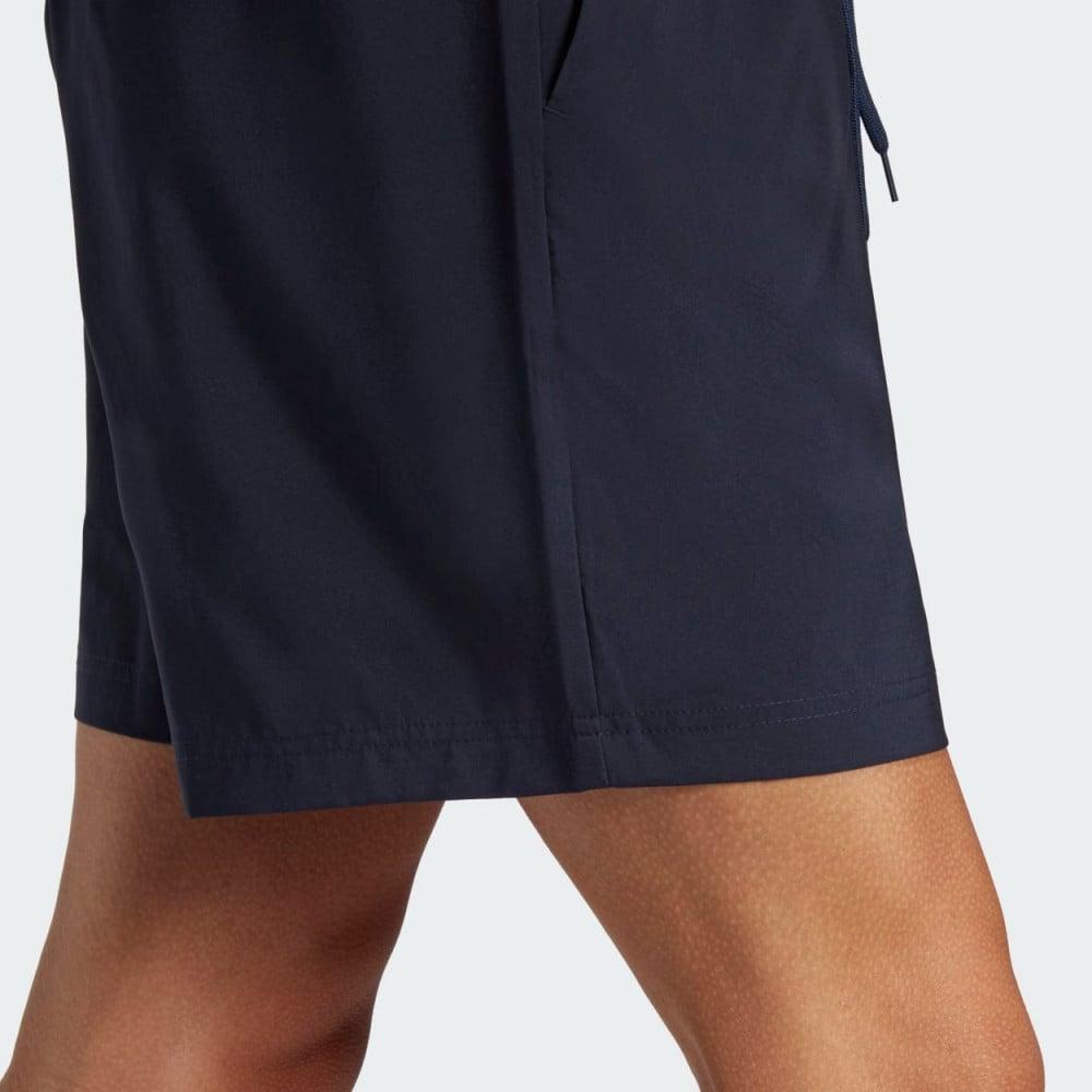 الماركة: أديداسالخامة: 100% نسيج عادي من البوليستر المُعاد تدويرهاللون: Blueالجنس: رجاليإن شورت أديداس هذا هو لباسك اليومي الجديد. تصميمه البسيط يجعله مُتعدد الاستعمالات، ما يعني أن بإمكانك ارتداؤه مع أي شيء في خزانتك. مهما كان الذي تقوم به وفي أي وقت خلال اليوم، ستبقى جافاً ومرتاحاً بفضل تقنية AEROREADY الممتصة للرطوبة.\n\nمصنوع بمواد مُعاد تدويرها 100% حيث يمثل هذا المنتج أحد حلولنا للمساعدة على إنهاء النفايات البلاستيكية.
